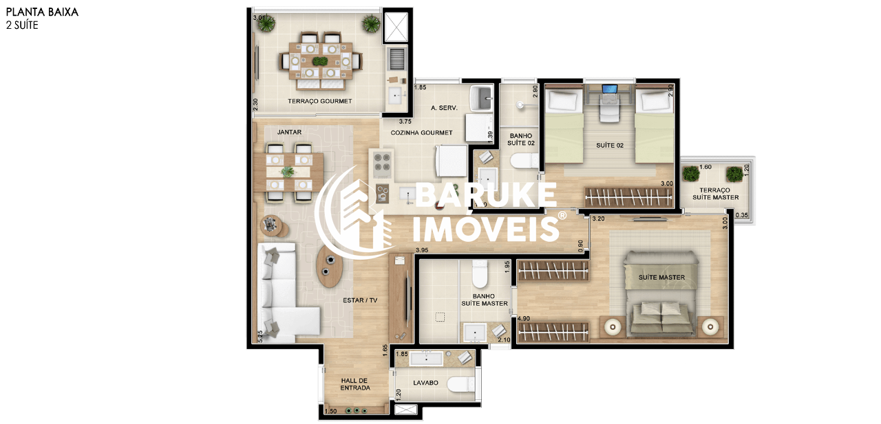 - 2 Suítes, sendo 1 máster com closet e sacada;